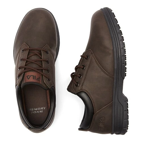 The Mens Fila Memory Blake slip resistant work shoes showcase durable synthetic uppers with a memory foam sock liner made with Coolmaxยฎ fiber. These shoes were tested in accordance with the applicable industry standards, including: ASTM F2913-11.Limited Manufacturer’s Warranty.